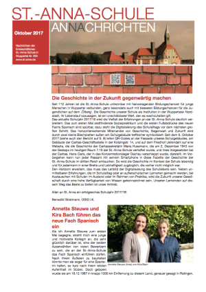 Zum Nachschlagen oder als Archiv - hier finden Sie alle Ausgaben der ANNAchrichten aus dem Schuljahr 2017. Viel Spaß beim Stöbern!