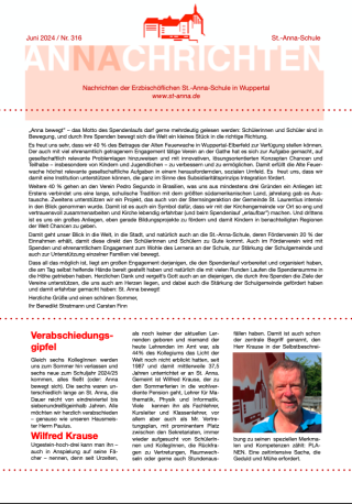 Zum Nachschlagen oder als Archiv - hier finden Sie alle Ausgaben der ANNAchrichten aus dem Schuljahr 2024. Viel Spaß beim Stöbern!