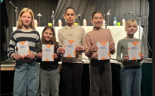 Vorlesewettbewerb 2025Fünf spannende Geschichten!Am 01. Dezember versammelten sich alle 6ten Klassen zum Vorlesewettberweb. Zuvor hatte jede der fünf Klassen den besten Vorleser oder die beste Vorleserin ausgewählt. Linnea Wingenbach trat mit "Die Bibliothek der verborgenen Erinnerung" für die 6a an und Luna van Eghem mit "Tintenherz" für die 6b. Katharina von Hoyenberg (6c) las aus "Rico, Oscar und die Tierferschatten" vor, Ana Teija Hüsgen Vitar (6d) las "Lottaleben" und Antonia Martens (6e) las aus "Harry Potter und der Gefangene von Askaban" vor. |