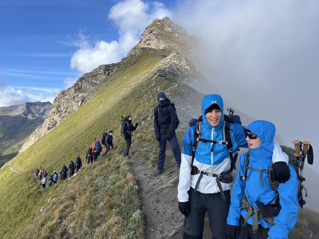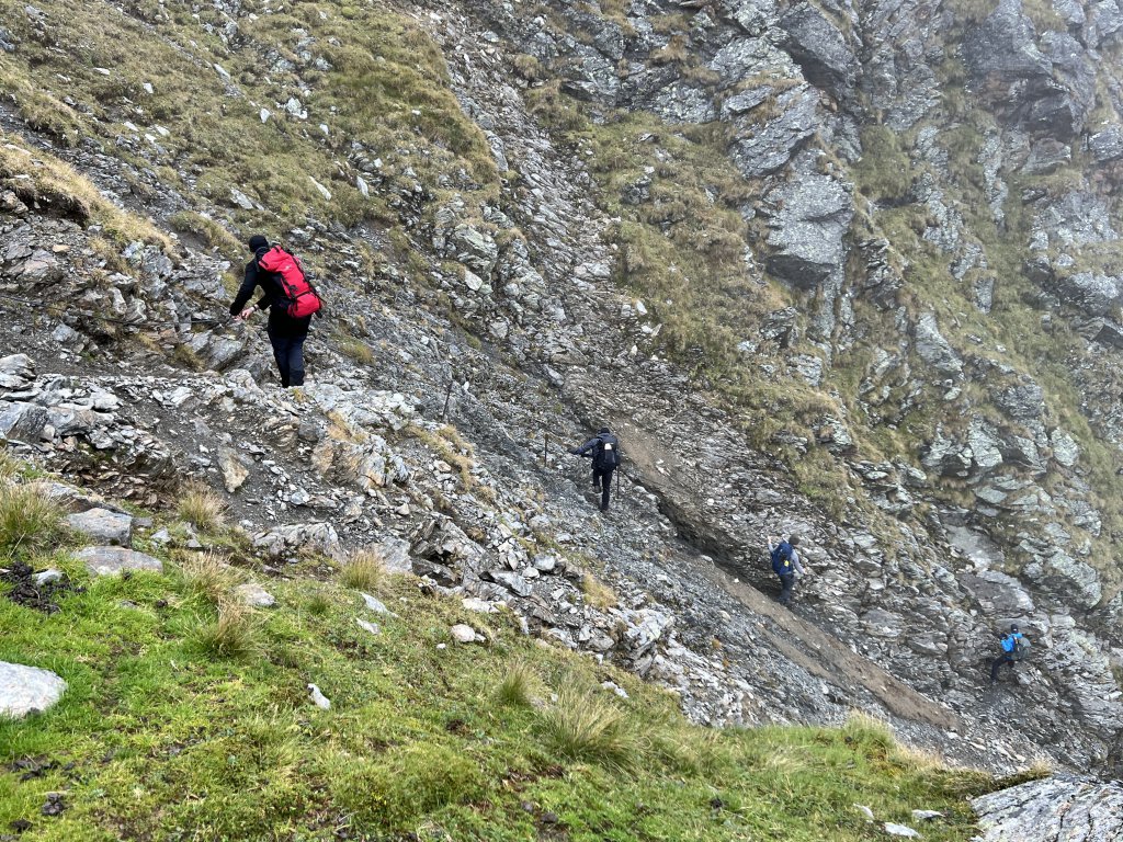 Wir hatten alles dabei: bergab, über Wiesenpfade, Steinfelder, steile und schmale Passagen, an denen man sich sogar an einem Seil festhalten musste und mit über 800 Höhenmetern im Aufstieg ingesamt. Der ein oder andere kleinere Schreckmoment durfte bei dieser anspruchsvollen Tour natürlich nicht fehlen und so ist Marko in ein Loch zwischen zwei Steinen getreten, so dass kurz der Fuß feststeckte. Außer Kratzer ist aber zum Glück nichts passiert und Marko konnte die Tour ganz normal fortsetzen. In solchen Momenten wird deutlich, wie wichtig Zusammenhalt, gegenseitige Unterstützung und Zuspruch innerhalb der Gruppe sind.