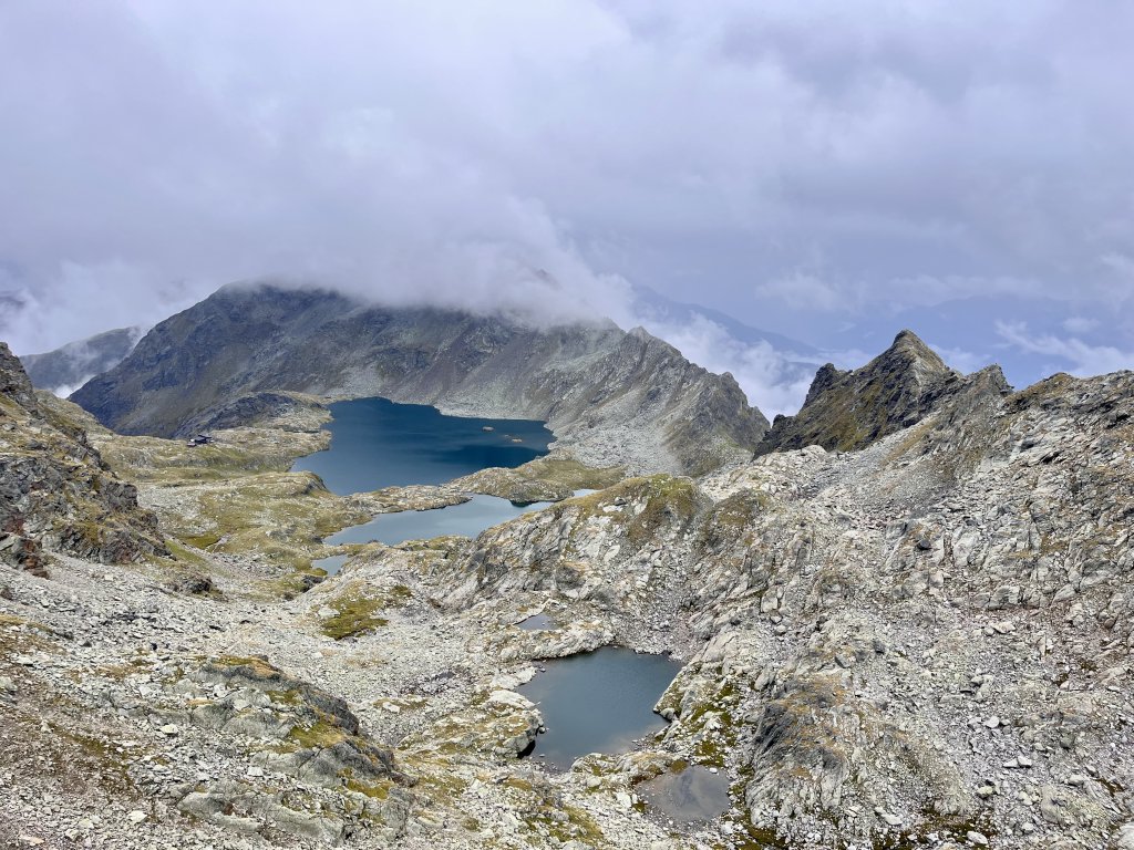 Nach diesem unerwarteten Start in den Tag konnten wir schließlich entspannt in die nächste Wanderung starten. Trotz der verhältnismäßig kurzen Dauer von etwa viereinhalb Stunden erlebten wir einiges. Der spannende Weg über das Kreuzseeschartl 2810m wurde durch das passende Wetter – Kälte, Nieselregen und Nebel – atmosphärisch perfekt unterstützt.