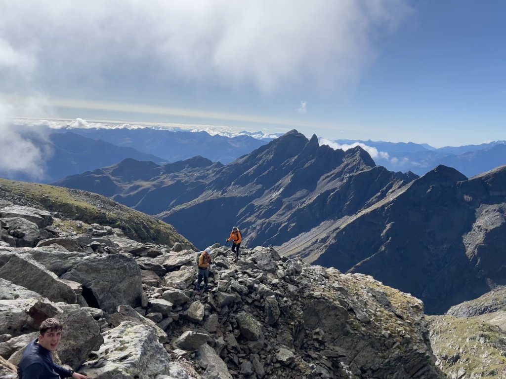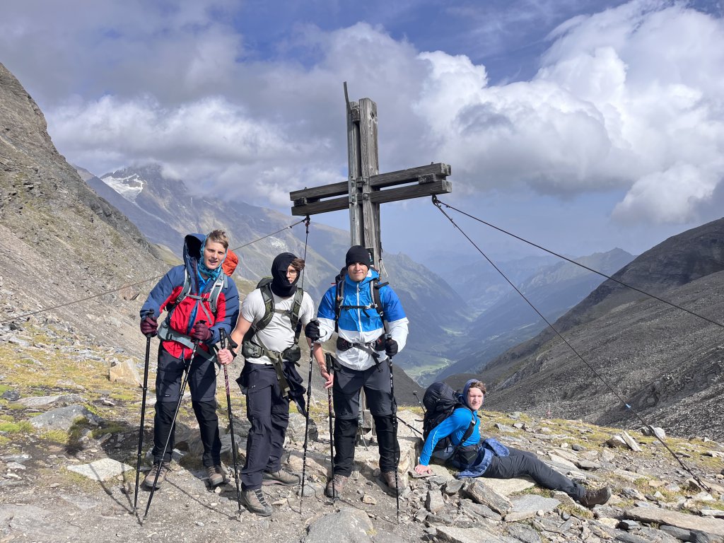 Die Petzeck-Gruppe stand nach ca. drei Stunden erfolgreich auf dem höchsten Berg der Schobergruppe (3.283 m). Oben lag sogar noch etwas Schnee, und zeitweise hatten wir freie Sicht auf den Großglockner, das Kitzsteinhorn und die Venedigergruppe. Paul S. musste feststellen, dass es viel entspannter ist, wenn man hinter dem „Bergführer“ geht – in diesem Fall war das Jonatan M., der uns in meditativer Ruhe und einem sehr gutem Gespür für den Weg zum Gipfel führte. Insgesamt waren wir fast acht Stunden unterwegs: 900 Höhenmeter rauf und 1.470 Höhenmeter runter.