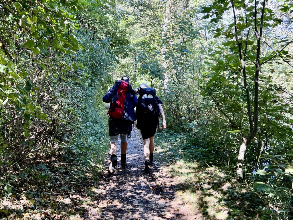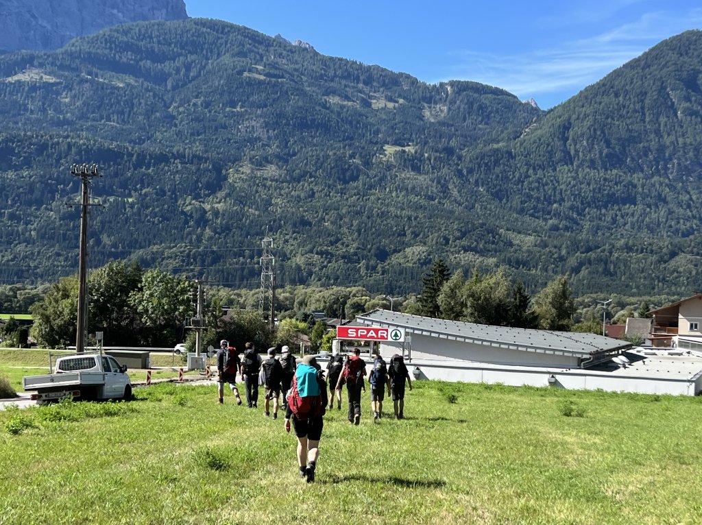 Der Abstieg war wie erwartet steil und die Sonne brannte auf den Römer-, Pilger- und Kirchwegen. Die Kirchwege waren so wurzelig und steil, dass ich zwischendurch überlegte, dass die so heißen, weil man dort beim Gehen direkt Buße tut. In Dörschach angekommen, führte uns unser erster Weg direkt in den Spar, genauer zum Eis oder bei Ilja und Jonatan W. gleich zum Zwölferpack Doughnuts. Danach ging es an der Drau entlang – die letzten Meter bis Lienz und das Tempo wurde kontinuierlich erhöht. Ich habe mich zwischenzeitlich einfach an diversen Rucksäcken festgehalten und ziehen lassen. Woher haben die diese Energie?