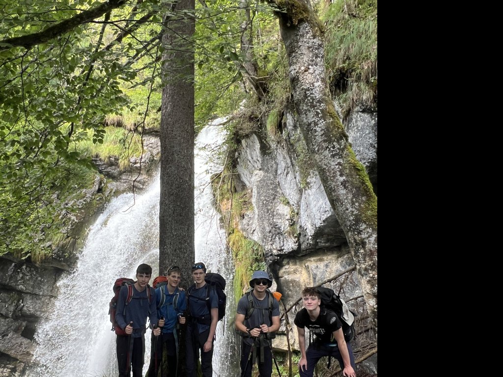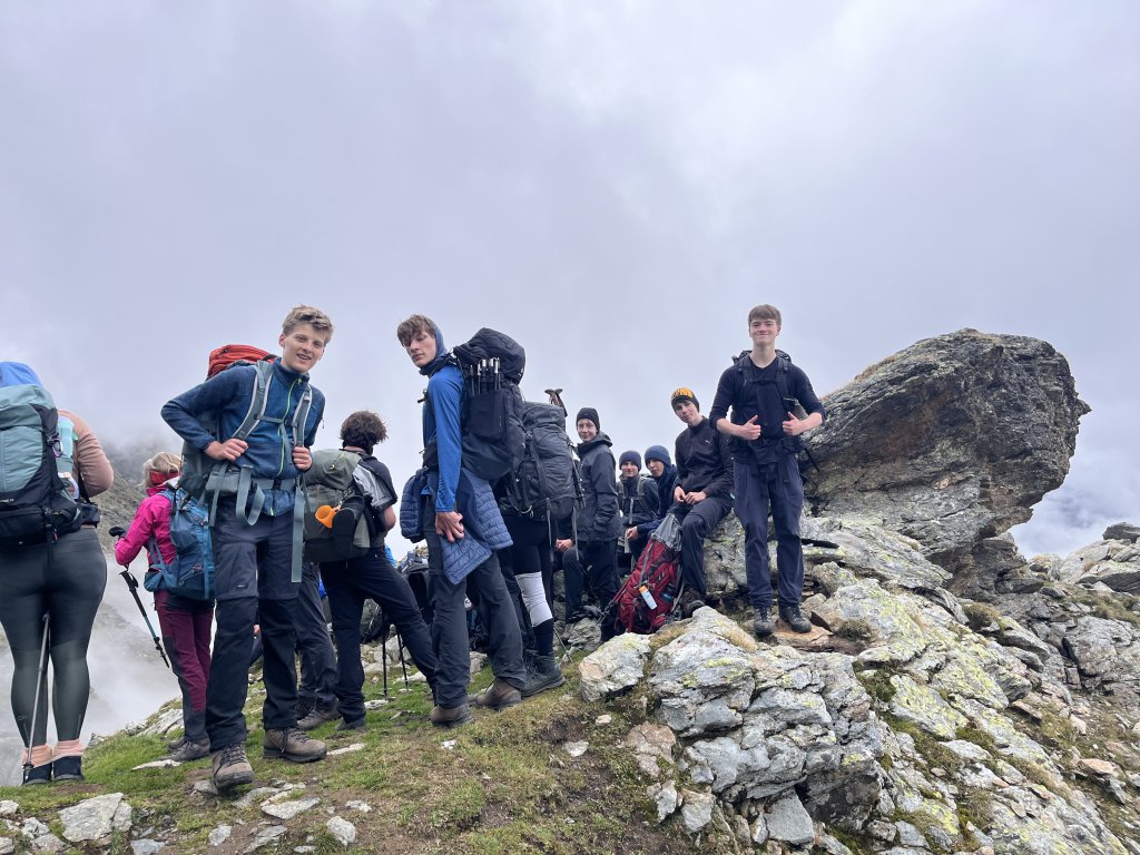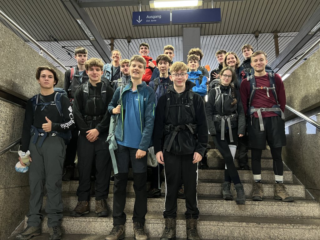 Nach fast zweijähriger Vorbereitungszeit, die u. a. einen Erste-Hilfe-Outdoorkurs, Materialkunde, Wanderungen im Bergischen Land und etlichen, erfolgreichen Waffelverkäufen im Gartencenter Mencke beinhaltete, durfte nun endlich auch diese Tour beginnen, die für 13 Schüler und eine Schülerin schon ein Jahr früher hätte starten sollen. Hätte… hätte ich mir vier Monate vor der Tour im letzten Jahr nicht mein Knie zerlegt. Der ein oder andere aufmerksame Leser merkt vielleicht jetzt schon, dass nicht Herr Thüner den Blog schreibt, kann er nicht, denn diesmal hat er Knie und sitzt in Wuppertal. Kurzentschlossen ist Frau Franke eingesprungen. Vielen Dank dafür! Emma und Mark, Bergprofis und ehm. St. Anna Schüler, sind natürlich auch wieder dabei.