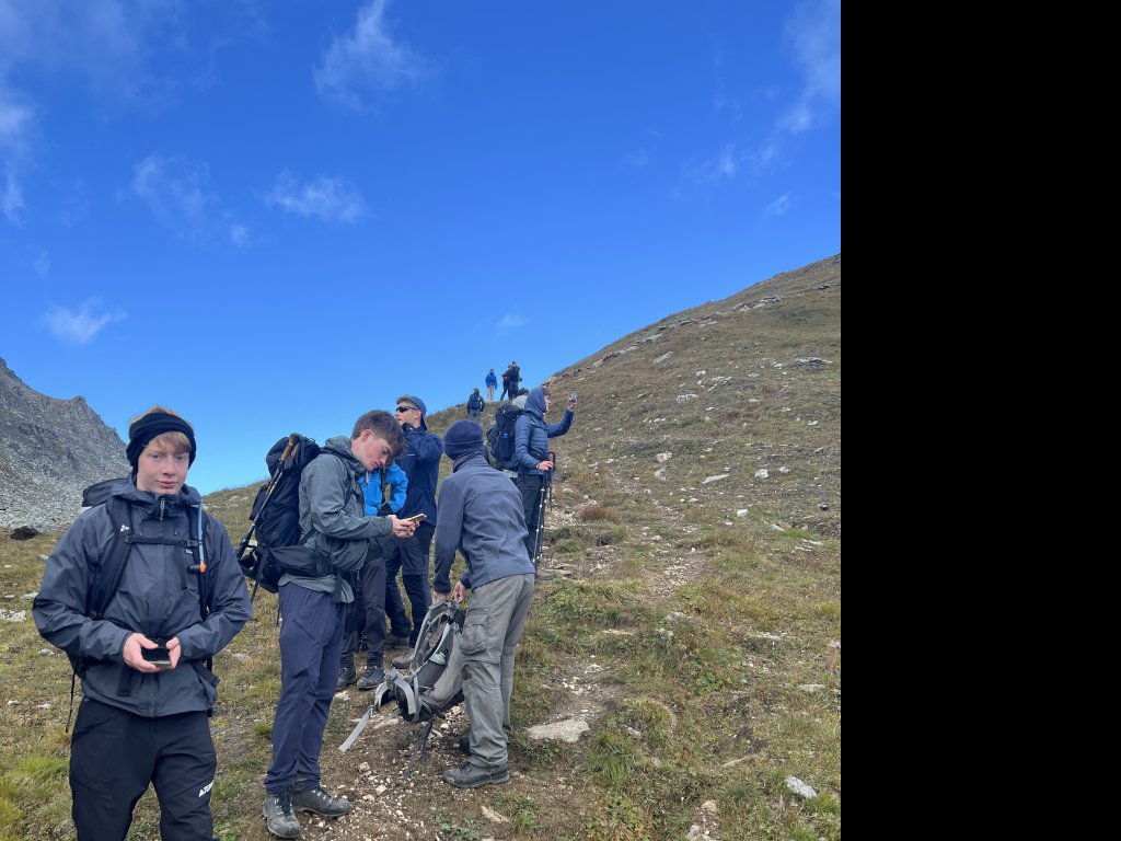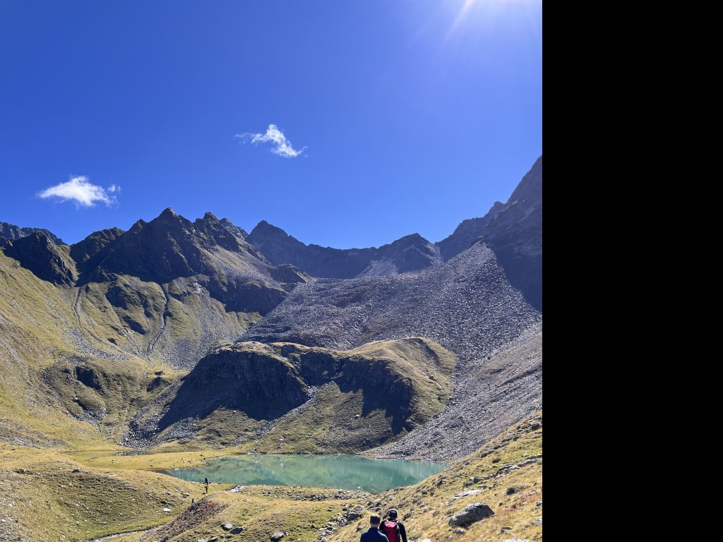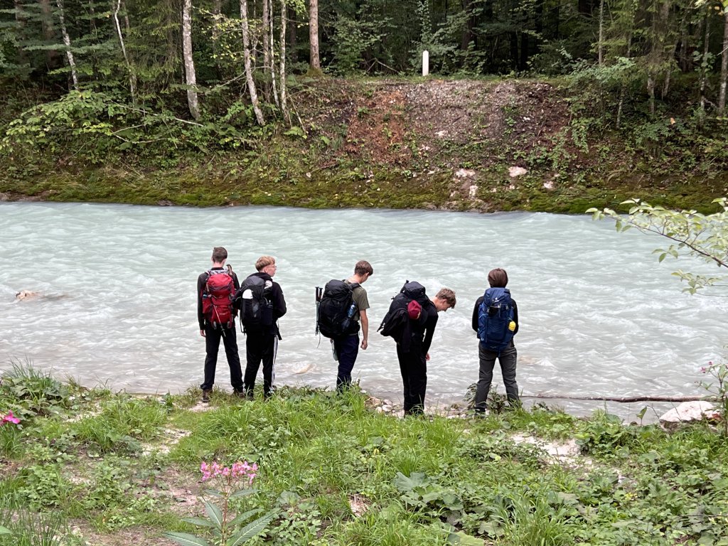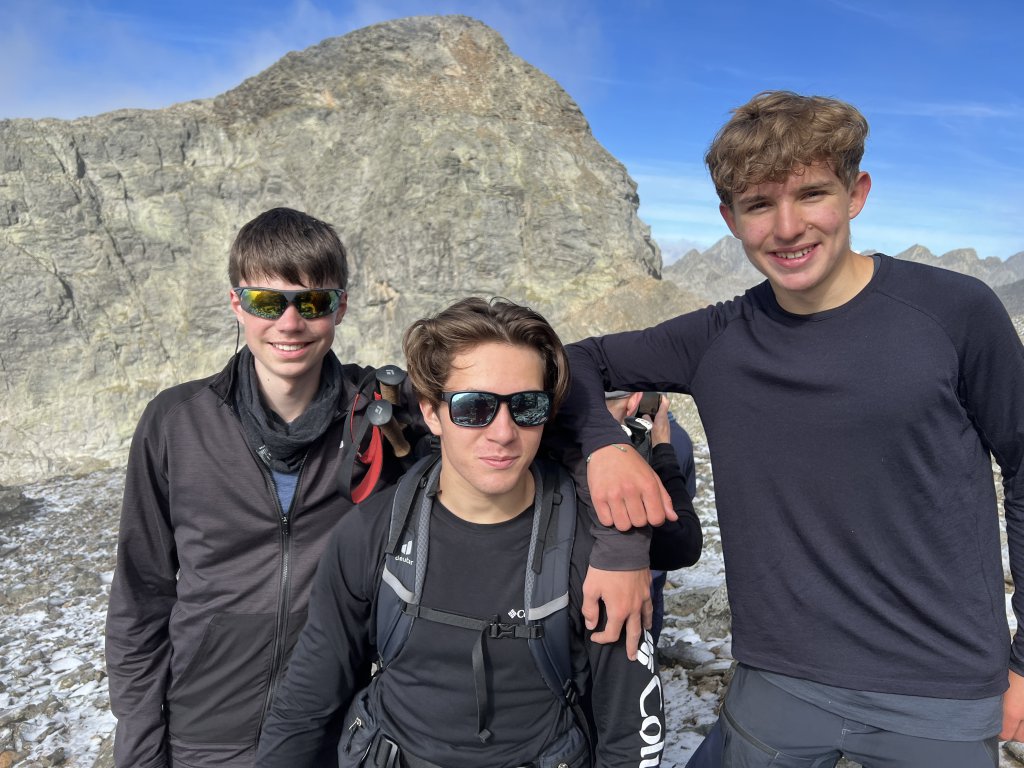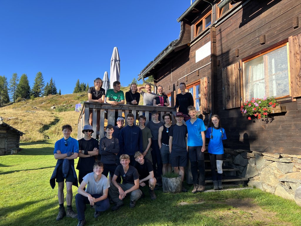 Einschub von Frau Franke: Wir, das sind Mark, die beiden Pauls und Antons, Joni, Janic, Nick, Franz und ich, wanderten zu den Langtalseen und schaffen damit Platz zur Reinigung der Hütte. Zunächst ging es 20 Minuten wieder bergauf, was zum Unmut einiger Schüler doch anstrengend war und mit der Aussage: „Warum wandern wir am Ruhetag?!“ begleitet wurde. Anschließend ging es weitere 20 Minuten zum See und als wir uns schon fragten, wann der See endlich kommt, erstreckte er sich plötzlich in tiefem Türkis vor uns, zwischen steilen Berghängen, unter fast wolkenlosem blauen Himmel. Die Jungs sprangen sofort ins kalte Wasser und zogen eine kleine Runde. Krebsrot, aufgrund der Kälte, krochen sie wieder aus dem Wasser und packten sich in dicke Jacken und Mützen ein. Danach wurde sich eine halbe Stunde in der Sonne aufgewärmt und anschließend der Rückweg angetreten. -