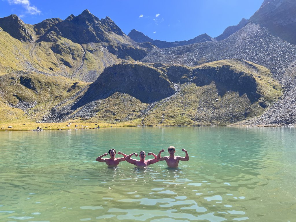 Frisch gestärkt machten wir uns an die letzten Höhenmeter zur Glorerhütte. Auf dem Weg eröffnete mir Paul, dass die Teilnahme an der Überquerung jetzt schon die beste Entscheidung seiner Schulzeit war. Das ist schon schön zu hören. Einige Jungs wagten sogar noch ein Bad im kleinen Bergsee, um sich anschließend mit eiskaltem Quellwasser zu duschen. Ich persönlich entschied: Heute reicht eine Katzenwäsche. Sicherheitshalber habe ich schon bei Lucas nachgefragt und auf der Elberfelder wird dann warm geduscht.