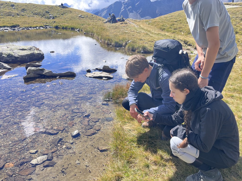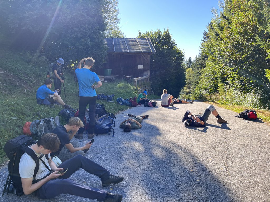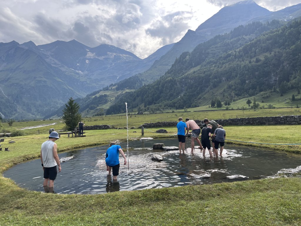 Beim Abstieg kamen wir an einem Bergsee vorbei. Einige hatten spontan die Idee, baden zu gehen – und manche blieben auch etwas zu lange im Wasser. Dort konnten wir tausende Kaulquappen und kleine Frösche beobachten. Etwa eine Stunde später kamen wir schließlich an der Lienzer Hütte an, wo wir etwas essen konnten.