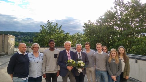 Ein herzliches Willkommen im LehrerzimmerHerr StD i.K. Carsten Finn kehrt als Stellvertretender Schulleiter an St. Anna zurückDas lange Warten hat nun ein Ende! Herr Carsten Finn, StD i.K. (links im Bild), wurde heute offiziell zum Vertreter unseres Schulleiters Herrn OStD i.K. Benedikt Stratmann ernannt. Die Ernennungsurkunde überreichte ihm in einer kleinen, zwanglosen Zeremonie der Erzbischöfliche Schulrat Herr Nielen (rechts im Bild), verbunden mit den besten Wünschen und Gottes Segen für seine zukünftige Aufgabe. Daraufhin wurde der ehemalige St.-Anna-Schüler Carsten Finn von seinen neuen Kollegen im Lehrerzimmer der Schule herzlich willkommen geheißen. Allen Anwesenden für die freundliche Begrüßung dankend, stellte er sich noch einmal kurz vor und verkündete, er freue sich auf eine gute Zusammenarbeit. Als Willkommensgeschenk wurde ihm anschließend ein Blumenstrauß überreicht.