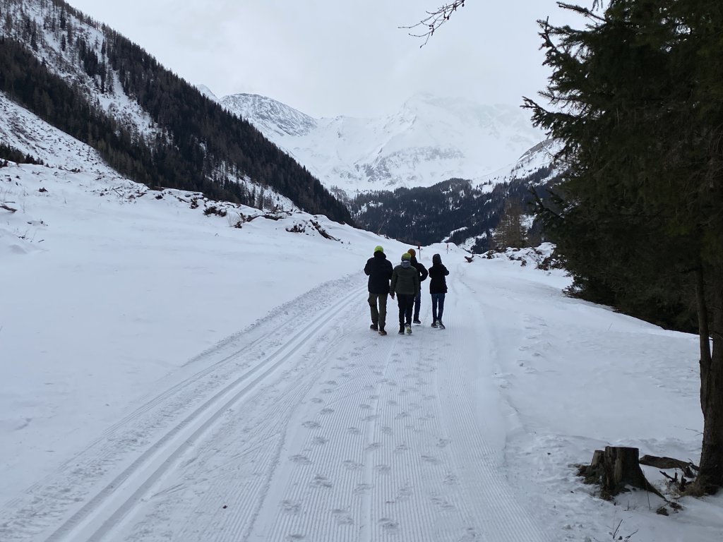 Die „Daheimgebliebenen“ spielen, chillen, nutzen Ihr Handy, um die Verwandtschaft auf dem Laufenden zu halten und üben sicher hart für heute Abend! Ich gehe mit vier Jungs meiner Klasse noch auf kurze Schneewanderung. Entlang des Tauernbaches geht es zum Gasthaus Gutenbrunn. Einer meiner Schüler will unbedingt eine Frittatensuppe essen. Dort angekommen müssen wir feststellen, dass das Gasthaus aufgrund eines Besitzerwechels geschlossen hat. Hätte ich das mal vorher gewusst,…ich hätte das Haus rechtzeitig gekauft und neu geöffnet. Aber manche finanziellen Wagnisse erfordern doch einen gewissen Vorlauf.
