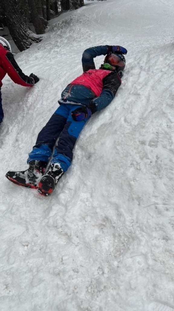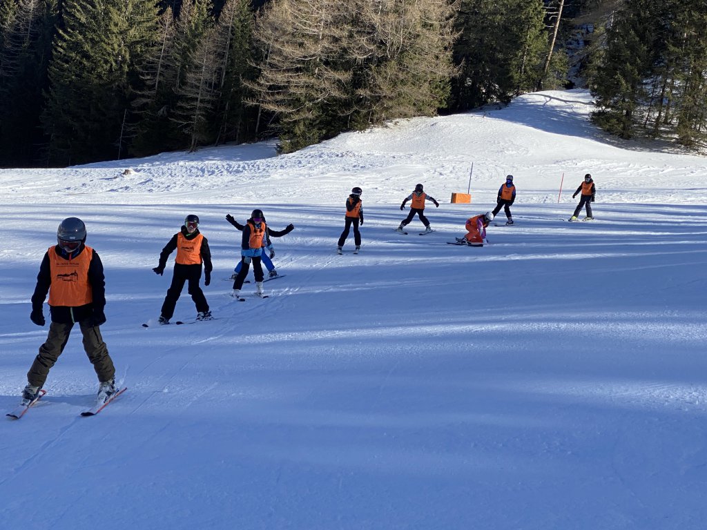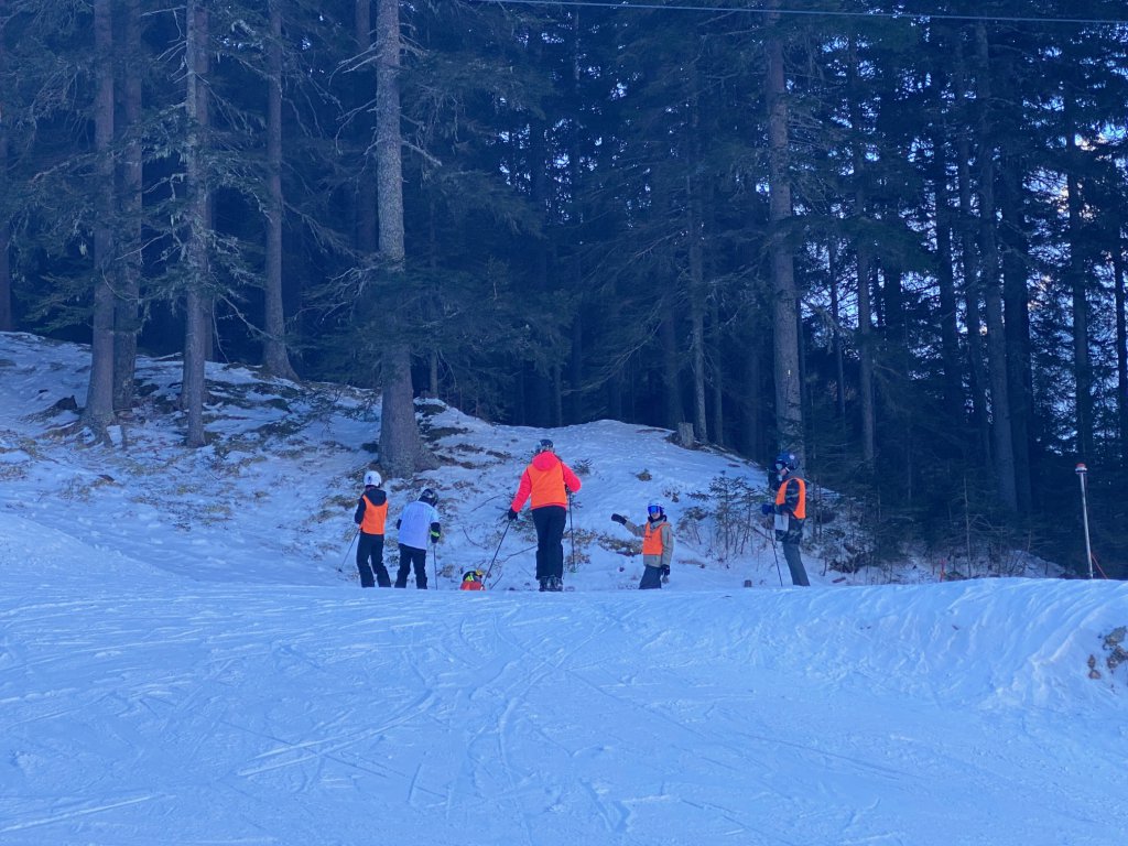 Ich nehme die rote Piste runter zur Talstation, empfange die Schüler*innen und begleite die zusammen mit Frau Bruno per Bus zurück zur Unterkunft. Das Einlagern der Skischuhe im Skikeller müssen wir noch üben. Nur so können wir sicher sein, dass am nächsten Tag auch jeder seinen Schuh anhat.