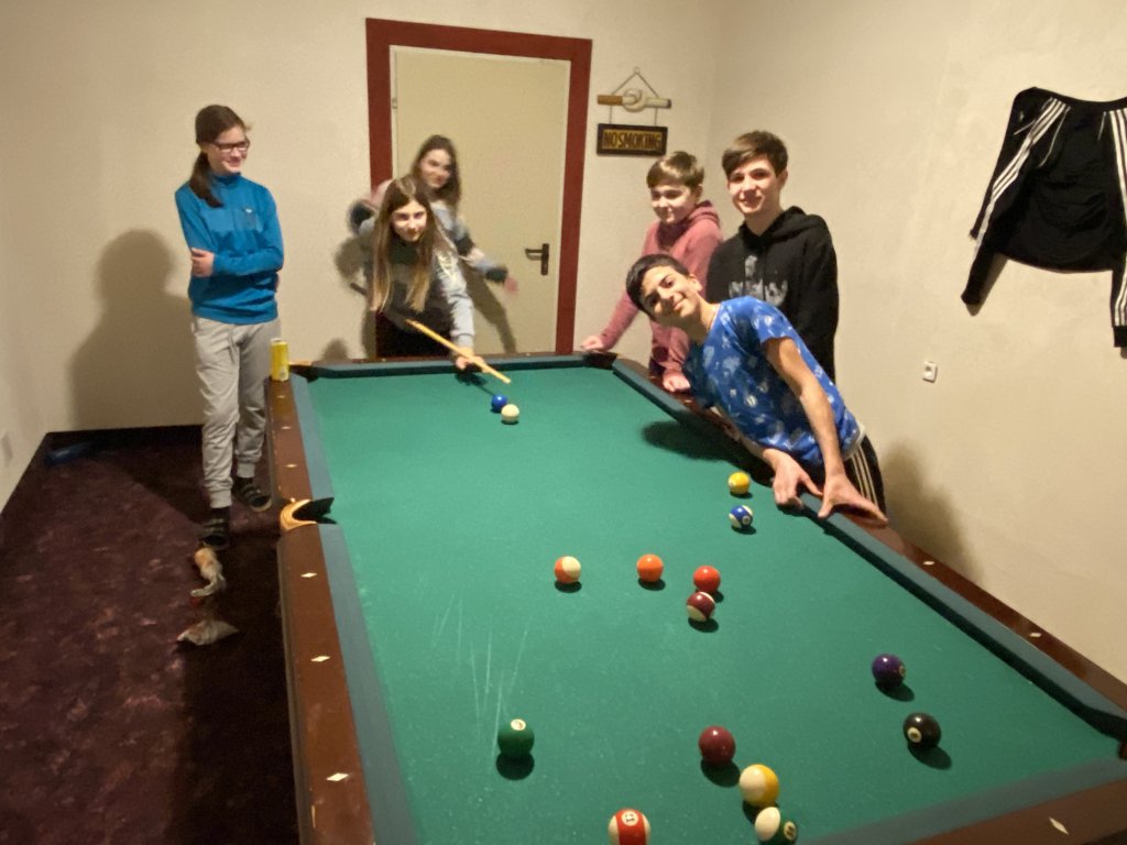 Gestern hatte Yasin Geburtstag, und wir wären wirklich schlechte Pädagog*innen, könnten wir nicht auch irgendwo im im Nirgendwo eine improvisierte Geburtagstorte herbeizaubern. Herzlichen Glückwunsch zum 14! Abends habe ich noch versucht, mit Zacharias eine Greatest Hits Show zu improvisieren. Ein bisschen Lampenfieber steht dem Musikevent noch im Wege, aber ich arbeite hartnäckig. Drei Abende haben wir ja noch und da sollte das doch klappen. Jede Menge Lärm, ein zweites Abendessen in der Pizzeria und Süßigkeitenorgien prägten den gestrigen Abend. Aber auch der Billiard Room wurde ausgiebig genutzt. Und wie letzte Nacht kehrte nach Ansage ab 22:00 Uhr schnell Ruhe ein. Sport macht doch müde...