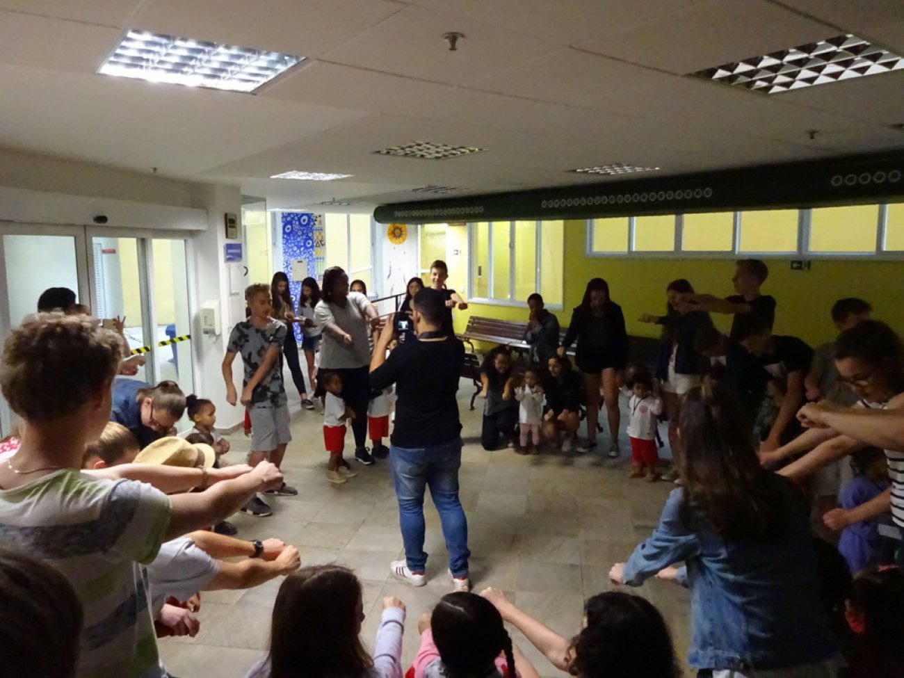 St.-Anna-Schüler/innen reden, spielen und tanzen mit den Mädchen und Jungen aus dem Kinderhort Maria e Marta