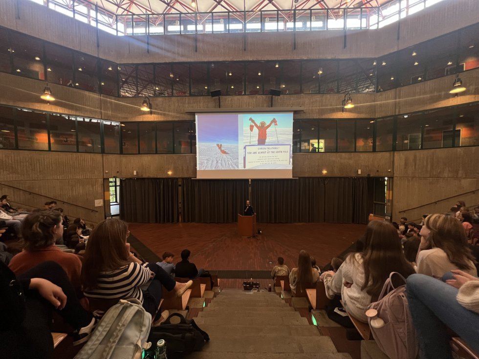Am Montag, den 26.05., hatte die Jahrgangsstufe 7 die außergewöhnliche Gelegenheit, in die faszinierende Welt der Polarregionen einzutauchen. Die abenteuerlustige Pilotin Kerstin Schley, die neben ihrer Tätigkeit im Cockpit "Arctic and Northern Studies" an der University of Alaska Fairbanks studierte, hielt einen inspirierenden Vortrag, der die Schülerinnen und Schüler in Staunen versetzte und ihr Interesse für Naturwissenschaften und Umweltfragen weckte.