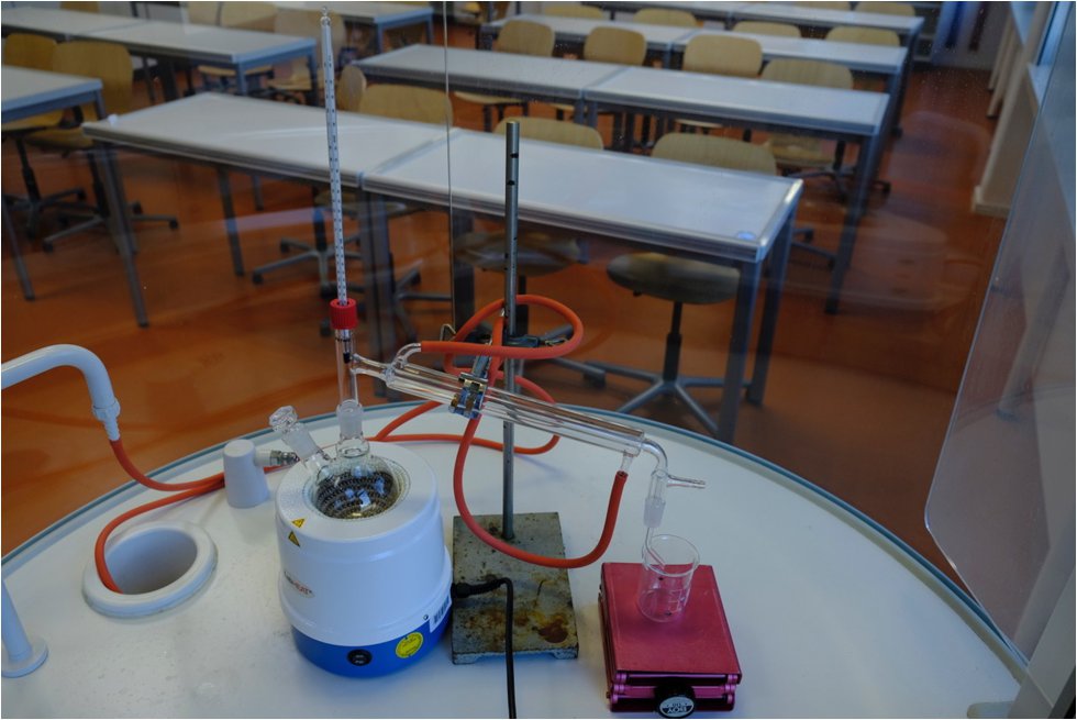 Auch in der Chemie müssen die einen oder anderen Gerätschaften ausgetauscht werden, damit die Versuche im Unterricht weiterhin sicher durchgeführt werden können. Diesmal wurde mit Hilfe des Fördervereins eine Destillationsanlage nach Liebig, sowie eine Apparatur mit einer Rückflusskolonne neu beschafft. Beide werden ausschließlich in der Sekundarstufe II eingesetzt. Nun steht Versuchen wie z.B. einer Estersynthese nichts mehr im Wege !