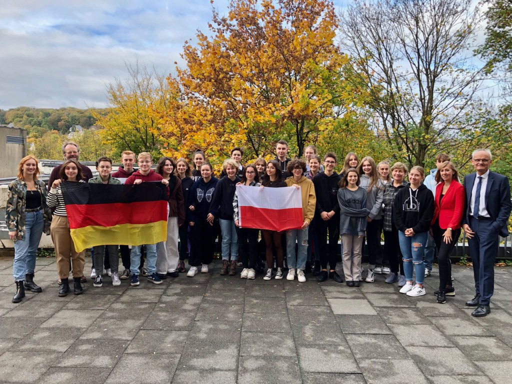 Am Sonntagabend durften wir bei typischen Wuppertaler Wetter – kräftiger Regen – eine Gruppe von dreizehn SchülerInnen plus Lehrerinnen aus Polen begrüßen. Sie stammen von der Allgemeinbildenden Oberschule Tadeusz Kościuszko in Liegnitz und sind bis Samstag zu Gast bei unseren Schüler*innen und den betreuenden Kolleg*innen Frau Böddicker und Herr Sänger.