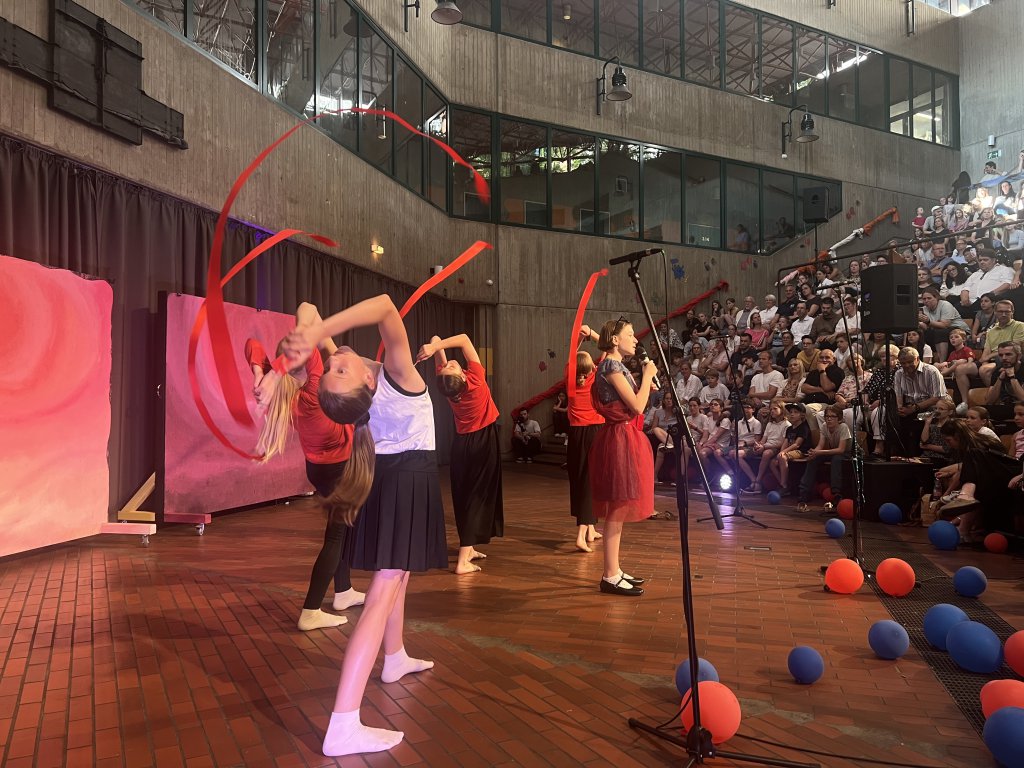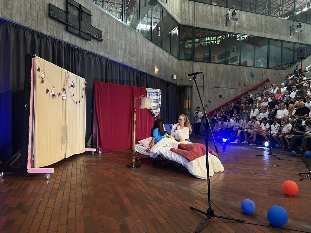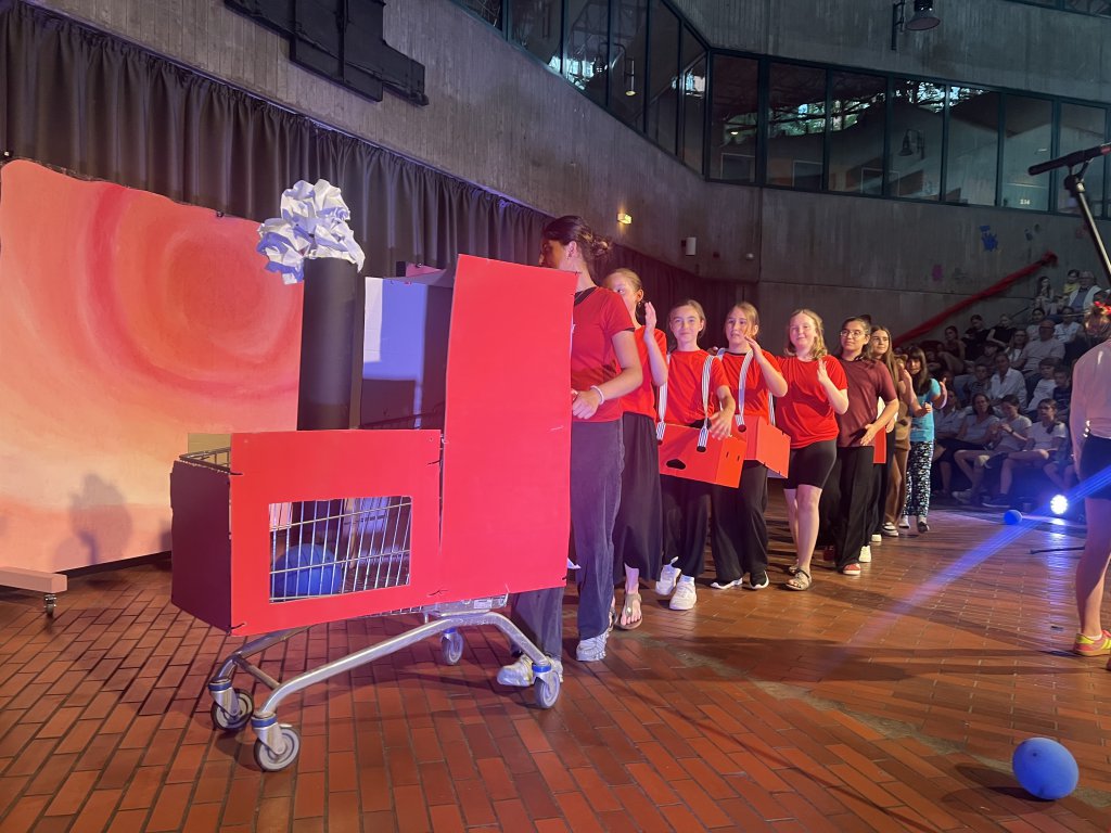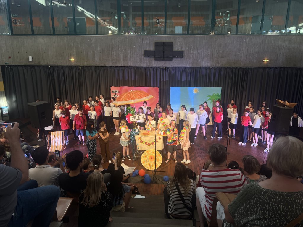 Am vergangenen Donnerstag, den 03.07., verwandelte sich das Forum der St.-Anna-Schule in eine Bühne voller Musik, Fantasie und Wissenschaft, als die Schülerinnen und Schüler der Musical-AG mit Unterstützung des KuLiMu-Kurses (Kunst/Literatur/Musik) unter der Leitung von Frau Berlekamp, Frau Jupe und Frau Niehaus das Musical "Der Beat deines Lebens" aufführten. Das Stück, das mitreißend und lehrreich zugleich ist, zog das Publikum in seinen Bann und bot eine einzigartige Mischung aus Unterhaltung und Bildung. Mit 650 BesucherInnen war jeder Platz besetzt.