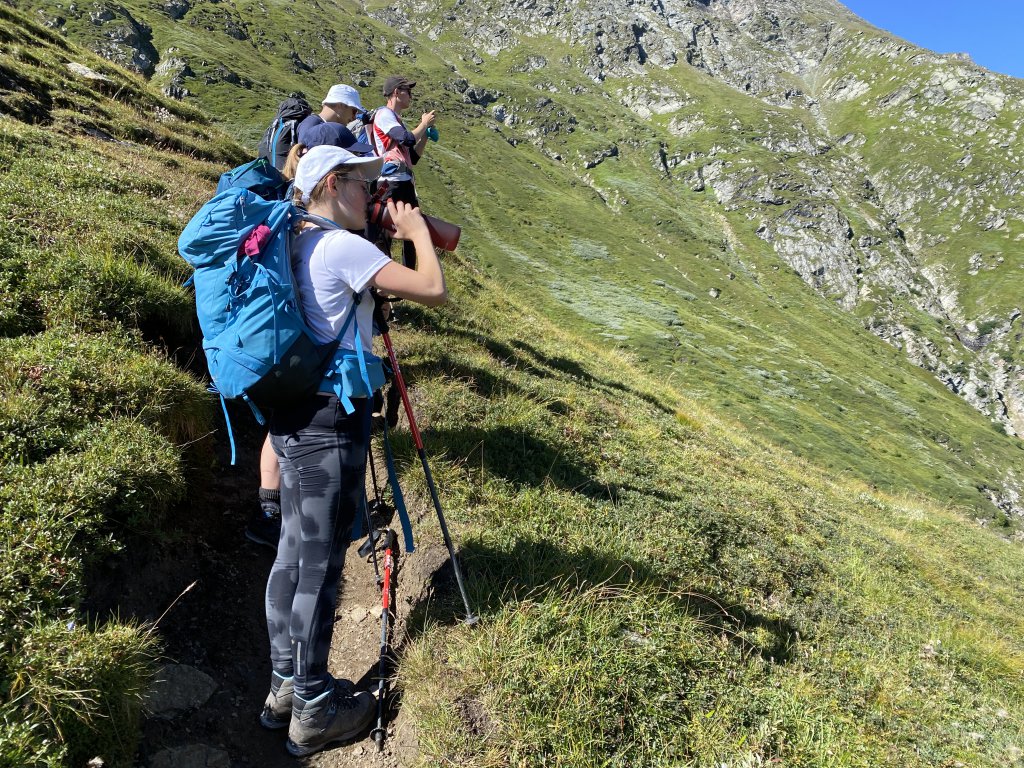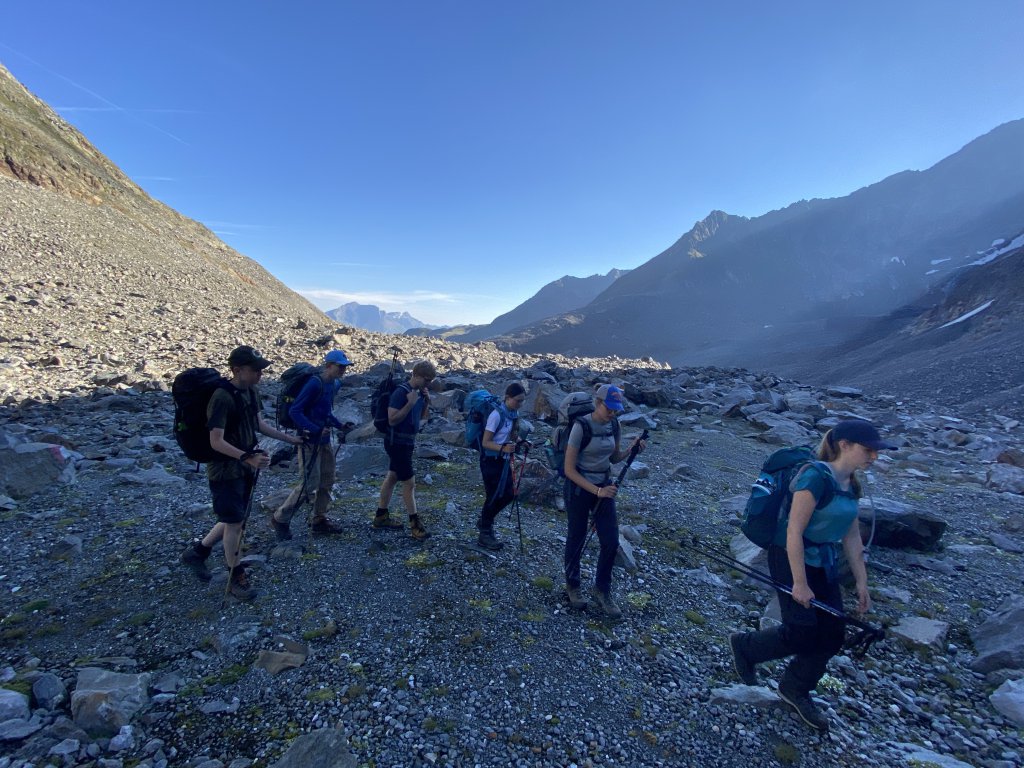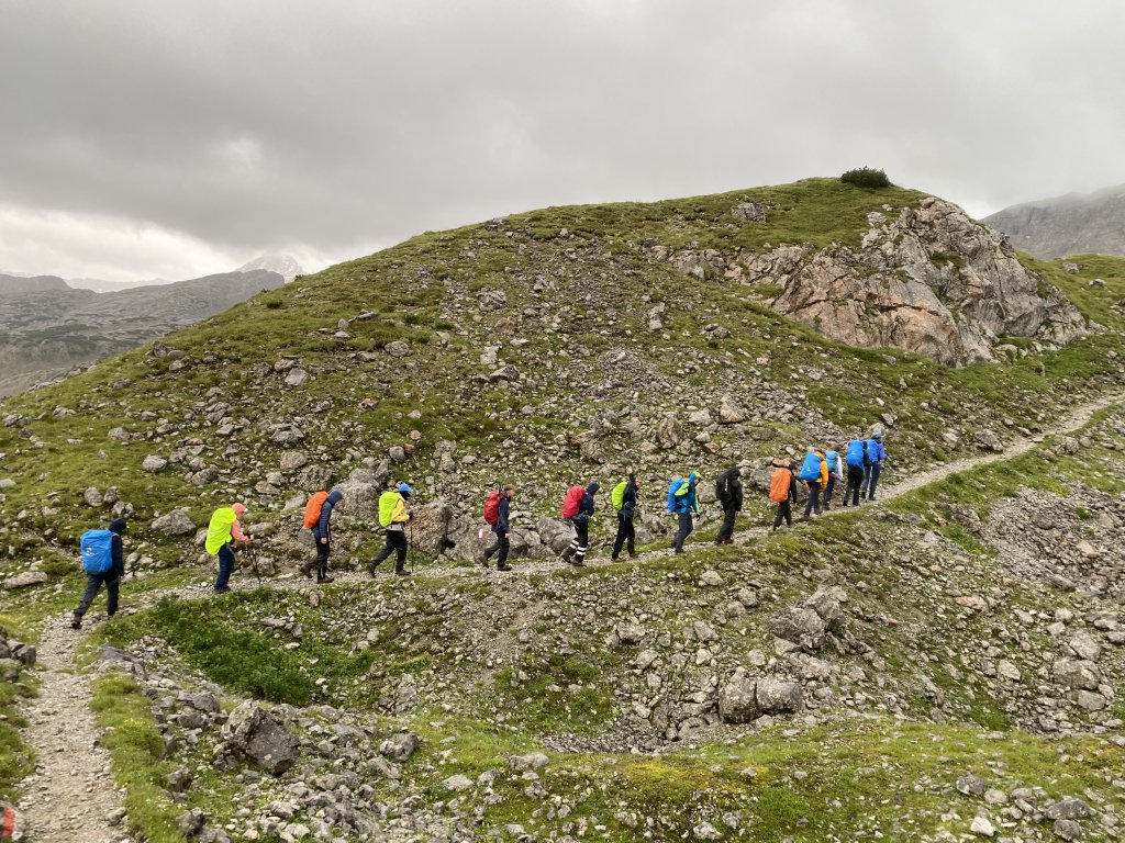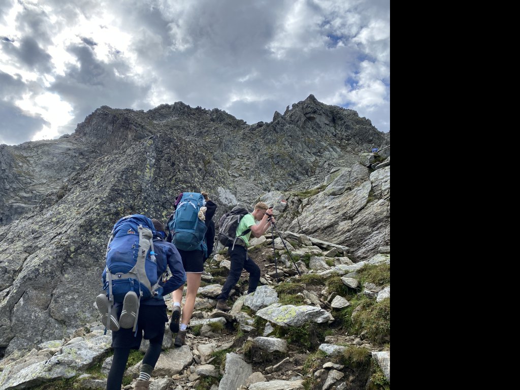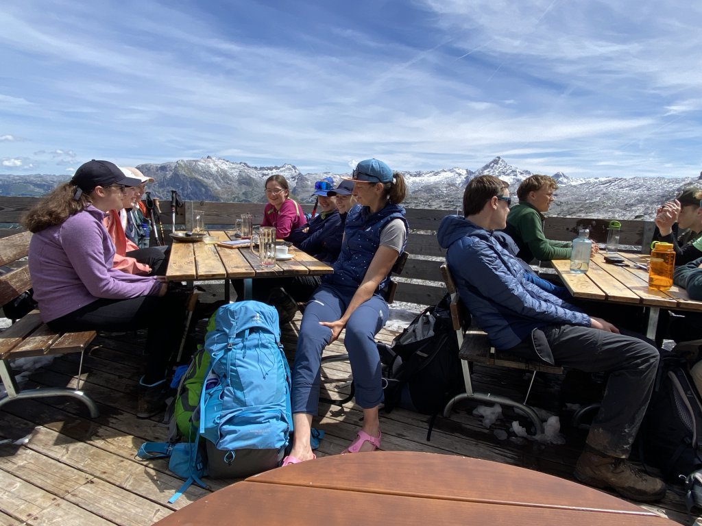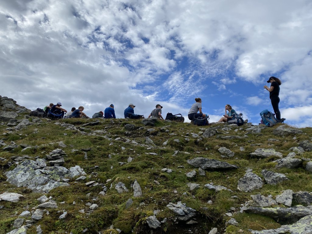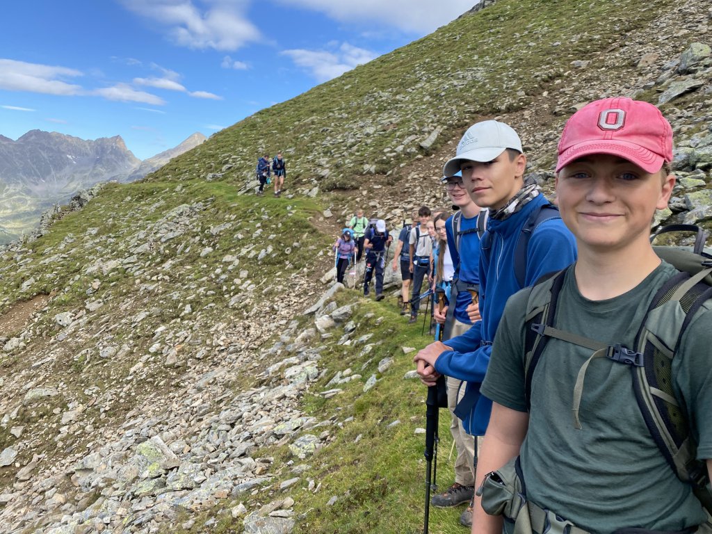 Rituale muss man pflegen. Und ein seit 2016 etabliertes Ritual an unserer geschätzten Bildungsanstalt erfordert, dass 16 Schülerinnen und Schüler, zwei Lehrer*innen und zwei (diesmal professionell geschulte) Begleiter*innen die ersten 14 Tage des neuen Schuljahres im Hochgebirge verbringen, auf Hütten übernachten, Gipfel erklimmen, tief in Abgünde schauen, sich mit Schafen und Murmeltieren dutzen und unterwegs interessante Menschen kennenlernen werden.