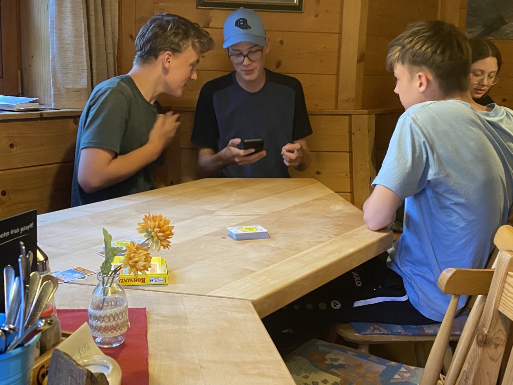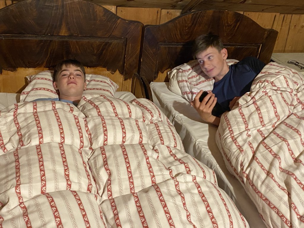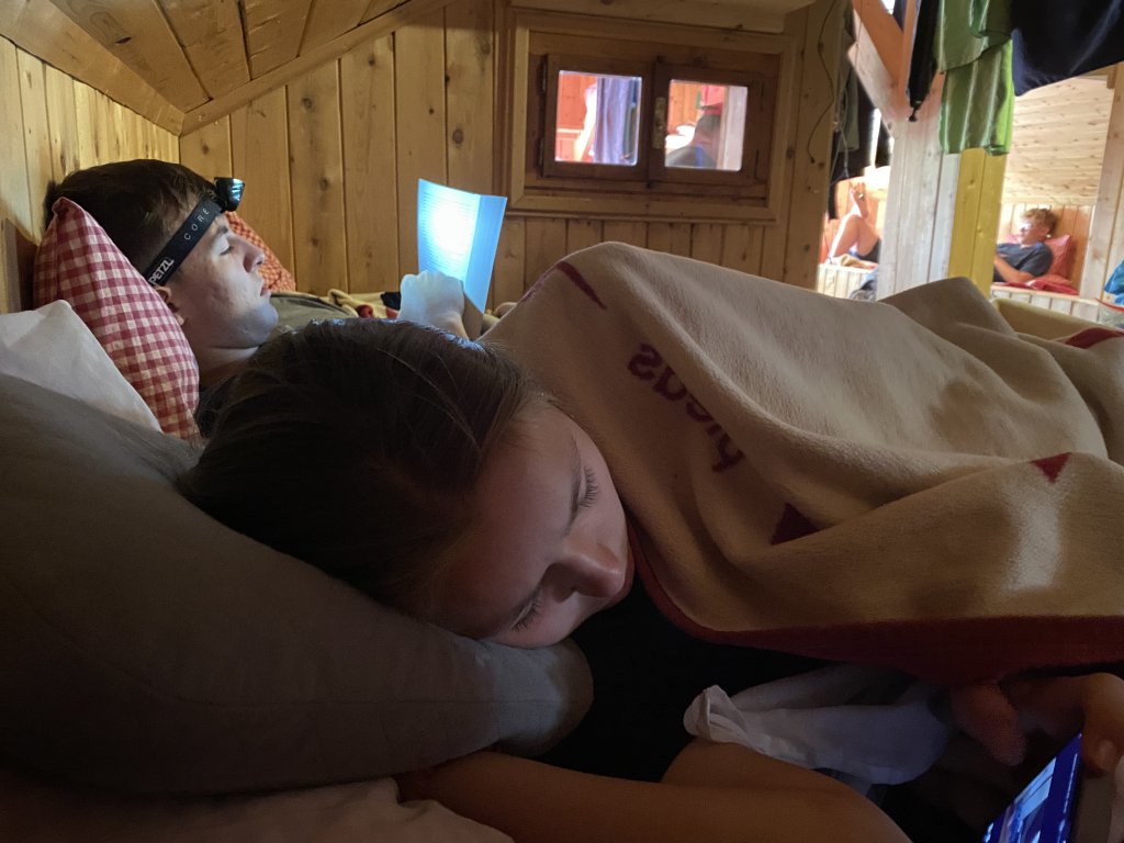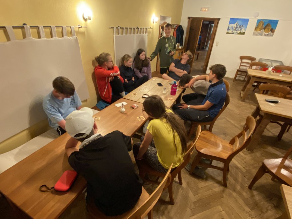 Ein paar wagemutige Jungs gehen noch schwimmen (bzw. planschen), aber die Außentemperatur lässt ausgiebiges Kneippen dann doch nicht zu. Abends gibts die berühmte Gemüsesuppe, das eine oder andere Radler, Schorle, Tee und den Rest vom Kuchen. Und dann gehts ab ins Bett. Morgen wirds nochmal sehr feucht, wenns zum Kärlingerhaus geht. Ab Dienstag soll dann die Sonne scheinen.