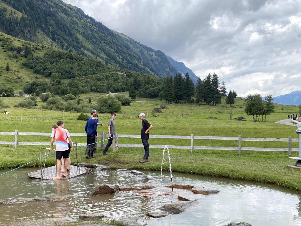 Der Rest kauft im Supermarkt ein. Ich besorge mir ein weiteres Shirt, alle guten Dinge sind drei. Ein paar Freizeitgourmets gehen zu einem amerikanischen Burgerbräter und essen vermutlich das erste Mal seit Berchtesgaden vernünftig. Alles eine Frage der Perspektive! Dann gehts mit dem Bus nach Zell am See und nach kurzem Aufenthalt weiter nach Ferleiten. Natürlich halten wir am Wasserspielplatz, wo mein sehr zuverlässiger Co Chef sehr zum Amüsement meiner sehr zuverlässigen Co Chefin erneut gleich ein Vollbad im Teich nimmt. Seltsamer Fetisch, aber Toleranz ist ja ein hohes Gut. Und ich habe wieder vergessen, den Schülern (Schülerinnen machen das von sich aus!) den Befehl zu geben, sich die gerade wieder trockenen Wanderschuhe auszuziehen.