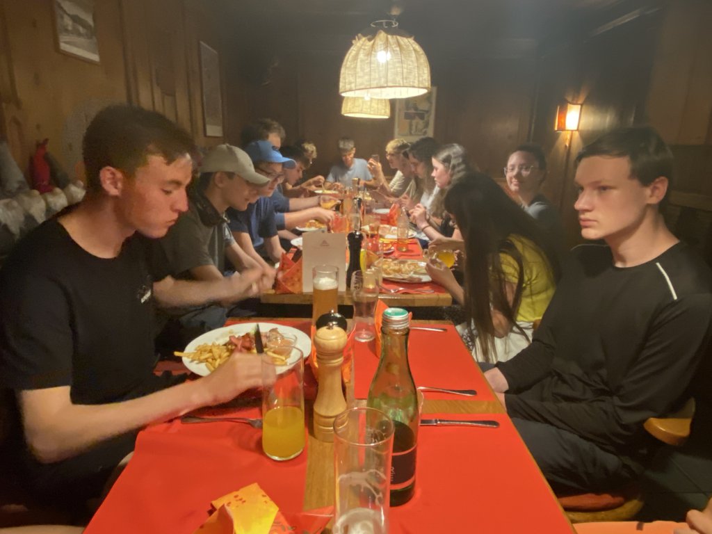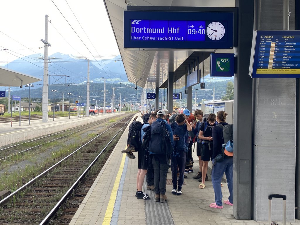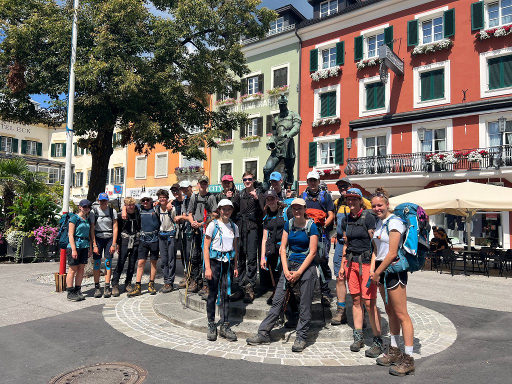 Gestern Abend reichte es in der Gruppenkasse noch für ein gemütliches gemeinsames Abendessen in einer Pizzeria. Leider verhagelte das Wetter einen Besuch des Stadtfestes mit Live Musik, sodass der letzte Abend dann doch kürzer ausfiel. Heute morgen dann ausführliches Frühstück und dann ab zum Bahnhof und los gehts über Spittal und München nach Hause. Montag haben uns Schule und Alltag wieder fest im Griff. So schnell gehen eben zwei Wochen um, wenn man sich jeden Tag der wilden Natur der Alpen aussetzt. Und diese Natur hat uns teilweise ziemlich zugesetzt. Einmal mehr ist sie Lehrmeister in der Frage, wer die wirkliche Macht auf unserem Planeten hat. Der Mensch mag sich die Welt vermeintlich Untertan gemacht haben, am Ende bleibt er aber nicht der Sieger. Das zu lernen und zu akzeptieren, ist eben auch ein Teil unseres Projekts. Wenn die zwei Wochen so ein bisschen nachwirken, man ab und ab bewusst verzichtet, weil man in den zwei Wochen gelernt hat, dass man auch mit weniger auskommen kann, haben wir ein wichtiges Ziel erreicht. Wenn dann auch noch neue Freundschaften geschlossen werden, umso besser. Schule soll eben mehr sein, als stumpfes Abarbeiten eines Lehrplans, der sich eh mit jeder neuen Legislaturperiode verlässlich ändert. Hier kann man lernen durchzuhalten, andere Sicht auf die Dinge zu entwickeln und sich in Gelassenheit zu üben. Genau die fehlt der Welt im Augenblick, schaut man nach zwei Wochen digitaler Abstinenz in die gängigen Nachrichtenportale. Hoffen wir also, dass wir wieder ein Team für 2024 zusammenstellen können.