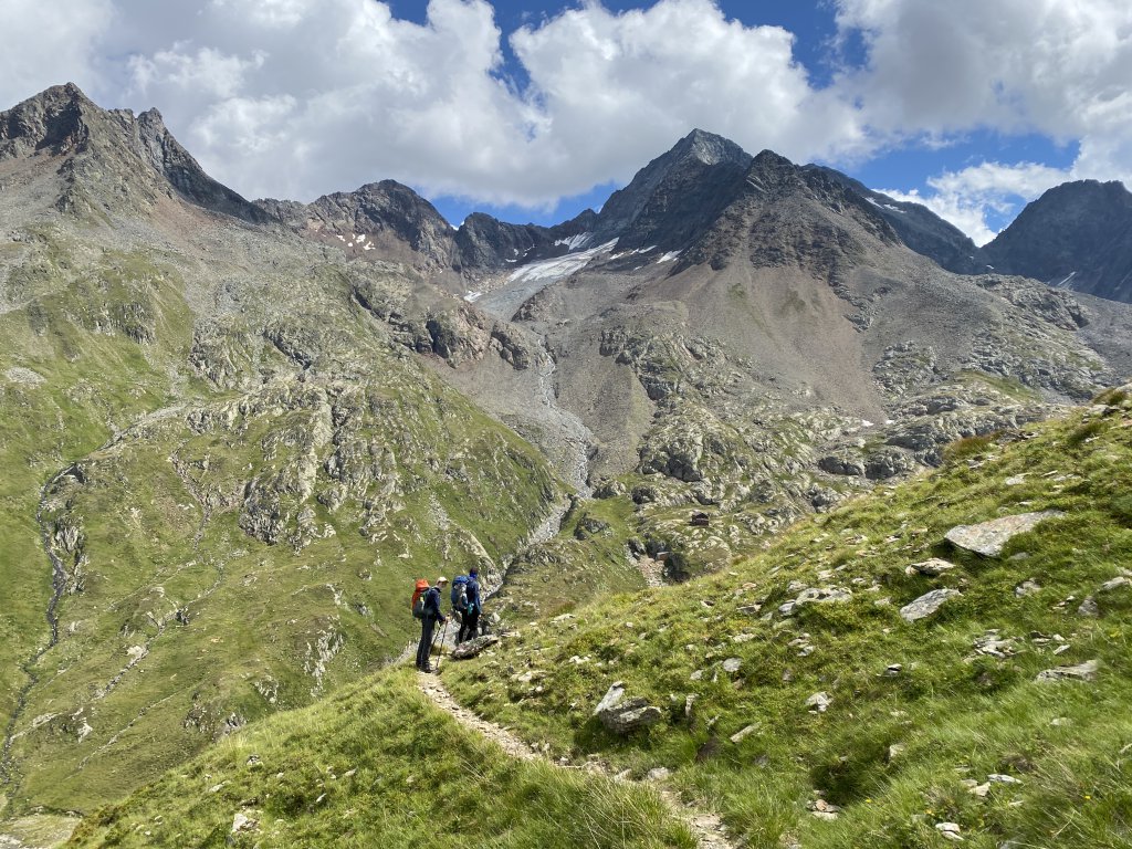 Kaiserwetter! Blauer Himmel und angenehme Temperaturen erwarten uns für die heutige Etappe zur Glorer Hütte via Stockerscharte und Mittagspause auf der schönen Salmhütte.
