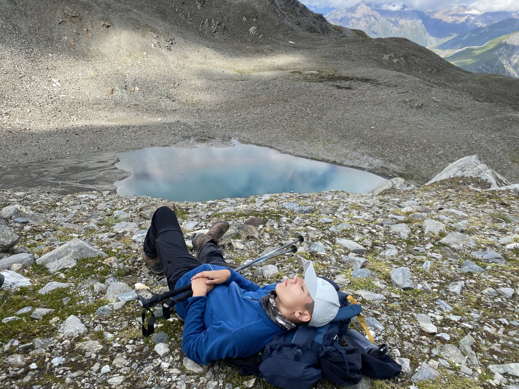 Am Nachmittag begeben sich einige zum ersten Langtalsee. Das Wetter ist perfekt, um ein weiteres Mal in einen kalten Bergsee zu springen. Der Rest bleibt auf der Hütte und unterhält sich über Schwerter, irgendwelche Codes und Gimmicks… offenbar gehören einige der Jungs einer hermetisch abgeriegelten Geheimloge an, mit eigener Sprache. Ich verstehe nichts und vielleicht ist das auch gut so. Später gibts Kuchen, Kaffee, Rindssuppe und wieder Sonne, Liegestuhl und den lieben Gott einen guten Mann sein lassen. Für die Knochen und Gelenke und sicher auch fürs Gemüt ist der Ruhetag eine echte Wohltat. Denn der morgige Tag wird es noch einmal in sich haben. Und ab Mittwoch beginnen wir dann mit dem langen Abstieg nach Lienz, der Hauptstadt Osttirols. Dann ist diese Alpenüberquerung geschafft. Heute Abend gibts aber erstmal nepalesisches Essen. Wie passend, denn die abgelegene Gegend verbreitet in der Tat so ein gewisses Himalaya Feeling.