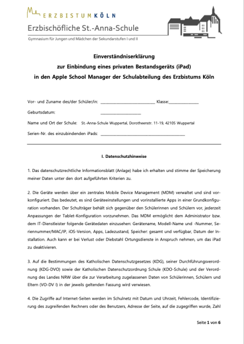 iPad Einbindung PrivatgeräteHier finden Sie die Einverständniserklärung zur Einbindung eines privaten Bestandsgeräts (iPad). |