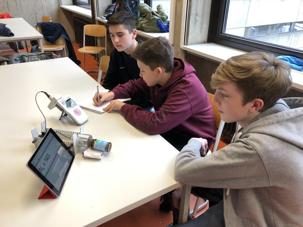 Die Verwendung einer speziellen Messapparatur macht es nun möglich, Radioaktivität mithilfe des Ipads zu messen. Bei Bedarf können die Schülerinnen und Schüler laufende Messungen sogar drahtlos über den Beamer für alle sichtbar auf die Wand projizieren.