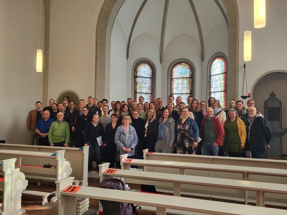 Frei nach dem Abi-Motto „Trau dich nur, komm vorbei…“ haben sich am Samstag, den 6. März, 43 silberne Abiturjubilare aus dem Jahr 2001 an St.-Anna-Schule getroffen. In der Kapelle wurden die Jubilare zunächst von Frau Feistauer und Herrn Paysen begrüßt, die Vorsitzende des Ehemaligenvereins, Frau Wingenbach, stellte die Arbeit von ANNAlumni vor und anschließend wurden sie von ihren ehemaligen LK-Lehrern, Frau Schabel und Herrn Galemann, durch die Schule geführt. Bei dem Buffet, das von ANNAlumni gespendet wurde, konnten sie dann mit ihrer Stufenleitung, Frau Friede, und ihren weiteren LK-Lehrern Herrn Lukannek und Herrn Meuter in Erinnerung schwelgen. Das wurde im Anschluss in einem Café über mehrere Stunden fortgesetzt.