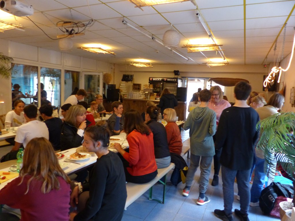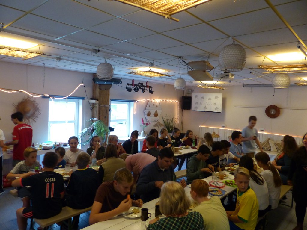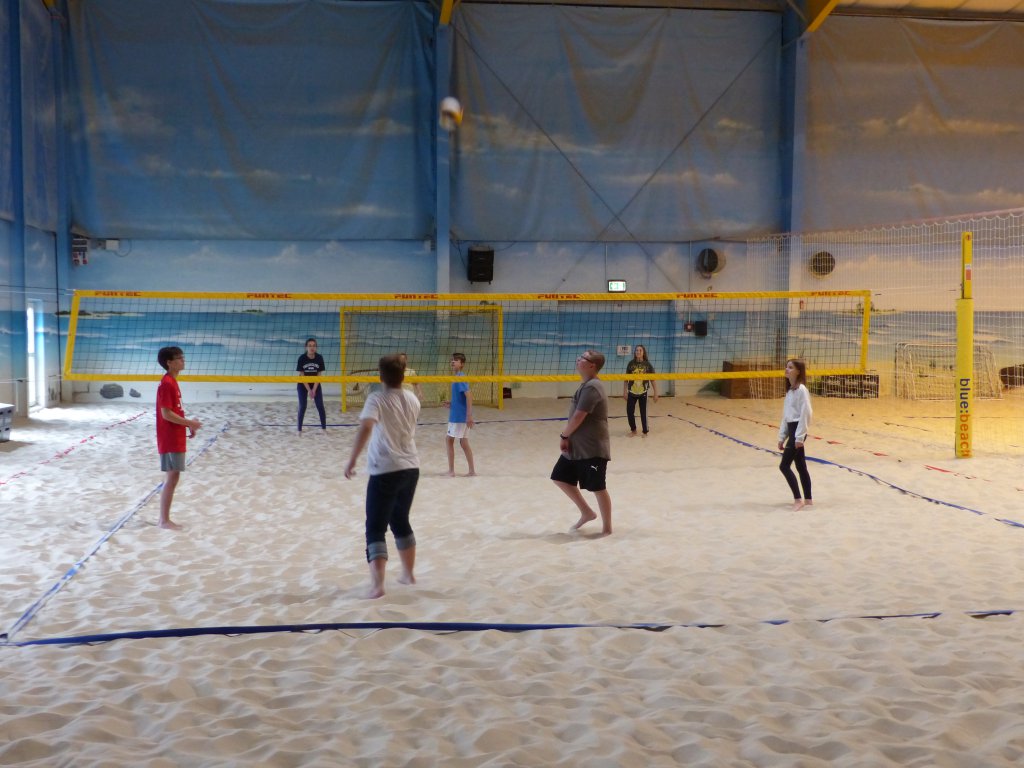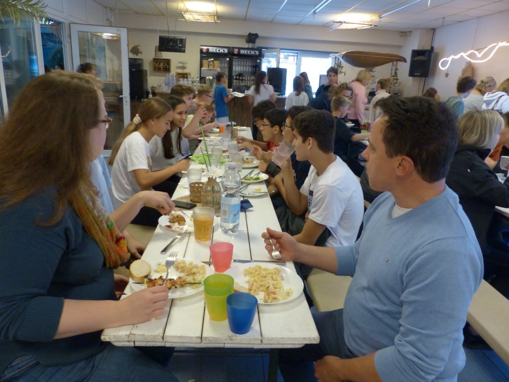 Nunja, es ist nicht die Copacabana und das Wetter spielt auch nicht so richtig mit, aber dennoch genießen alle den heutigenj Tag im Blue Beach am Kemnader See bei Volleyball, Fußball und Gegrilltem. Ein leckeres Buffet wird von den Eltern bereitet und nach dem Spiel ist ein feines Essen mit Steaks, Würstchen, Salaten und Obst angesagt. Wenn auch der Wetter-Gott besser hätte mitspielen können, ist dies ein schöner letzter Tag mit den Austauschschülerinnen und -schülern aus Rio.
