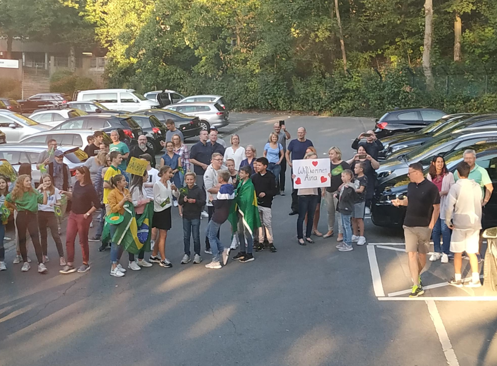 Samstagabend 18:30 Uhr. Endlich ist es soweit. Der große Reisebus mit den 19 Schülerinnen und Schülern und den beiden sie begleitenden Kolleg/innen unserer Partnerschule, der Corcovado Schule, in Rio de Janeiro, biegt ein auf den Parkplatz am Stadion Zoo und ein großes Hallo und Fähnchenschwinken begrüßt die Gäste nach ihrer langen Anreise von Rio über Frankfurt in Wuppertal. Hier werden die Schülerinnen und Schüler aus dem fernen Brasilien die nächste Woche in den Gastfamlien und auch im Unterricht an unserer Schule verbringen.