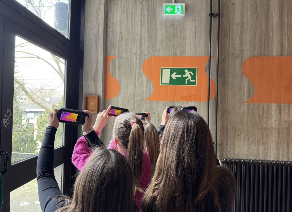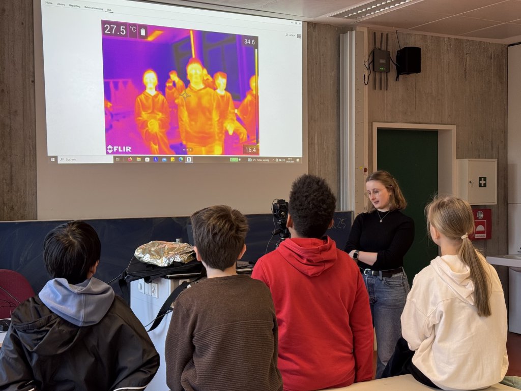 Im Physikraum stand Röntgentechnik im Mittelpunkt. Besonders beeindruckend war das Durchleuchten einer konservierten Fledermaus, bei dem die Schülerinnen und Schüler einen einzigartigen Blick ins Innere des Tieres werfen konnten. Die Schülerinnen und Schüler konnten außerdem aus mehreren Röntgenbildern einen menschlichen Körper zusammensetzen und so anschaulich lernen, welche Körperteile wie dargestellt werden. Die große Wärmebildkamera bot Raum für interaktive Experimente: Die Kinder beobachteten live, was passiert, wenn man sich mit warmen Händen über die Haare streicht. Außerdem durften sie mit kleinen Hand-Wärmebildkameras das Schulgebäude eigenständig auf „Schwachstellen“ überprüfen.