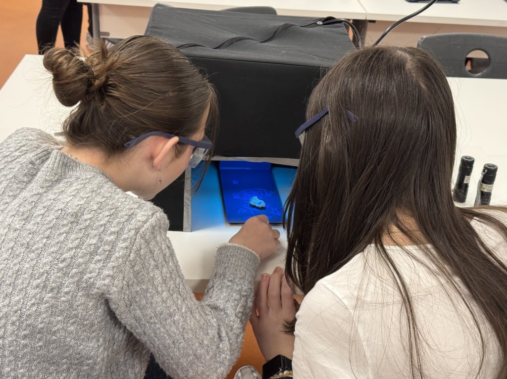 Jeden Tag hatte eine andere sechste Klasse die Gelegenheit, an den abwechslungsreichen Stationen entweder im Biologie- und Physikraum der St.-Anna-Schule oder im Röntgenmuseum selbst zu forschen. Am Montag und Dienstag begannen zwei Klassen der St.-Anna-Schule. Im Biologieraum führten die Kinder Ultraschalluntersuchungen an einem Embryo-Modell durch und lernten außerdem, wie Fledermäuse sich mithilfe von Ultraschall in der Dunkelheit orientieren. Sie bestaunten fluoreszierende Mineralsteine unter der UV-Lampe und untersuchten die Wirkung von Sonnencreme: Unter dem UV-Licht wurde sichtbar, wie unterschiedlich gut verschiedene Produkte vor schädlicher Strahlung schützen.